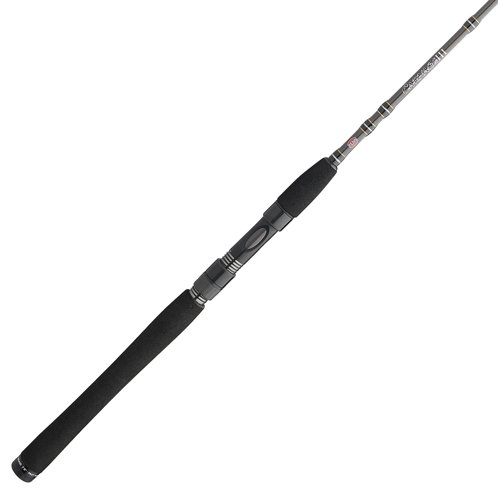 The PENN Carnage III rods are truly in a class of their own. These rods represent the next generation of high-performance rod building with powerful. lightweight blanks that are also extremely durable. Our SLC2 blank construction on inshore models houses inner spiral carbon wraps and outer layers of longitudinal carbon fibers to provide an extremely strong. yet balanced rod. Spec’d with high-end components like Fuji K-Guides. Sea-Guide and Fuji reel seats. and Hypalon/Rubber Shrink tube handles. this rod will be anglers’ next go-to workhorse.