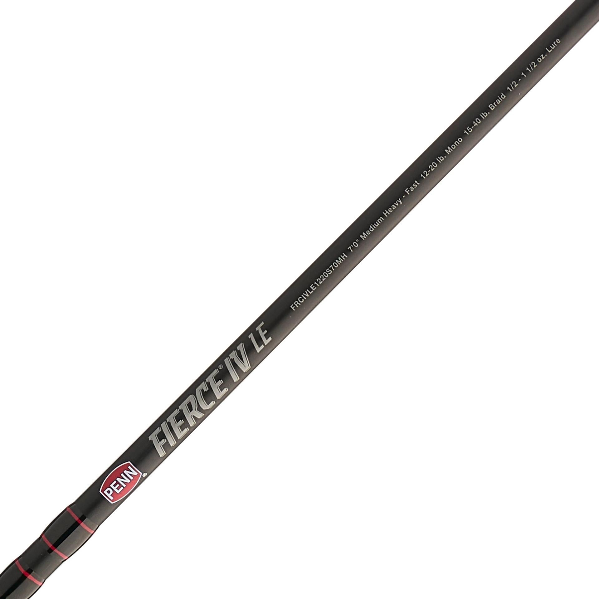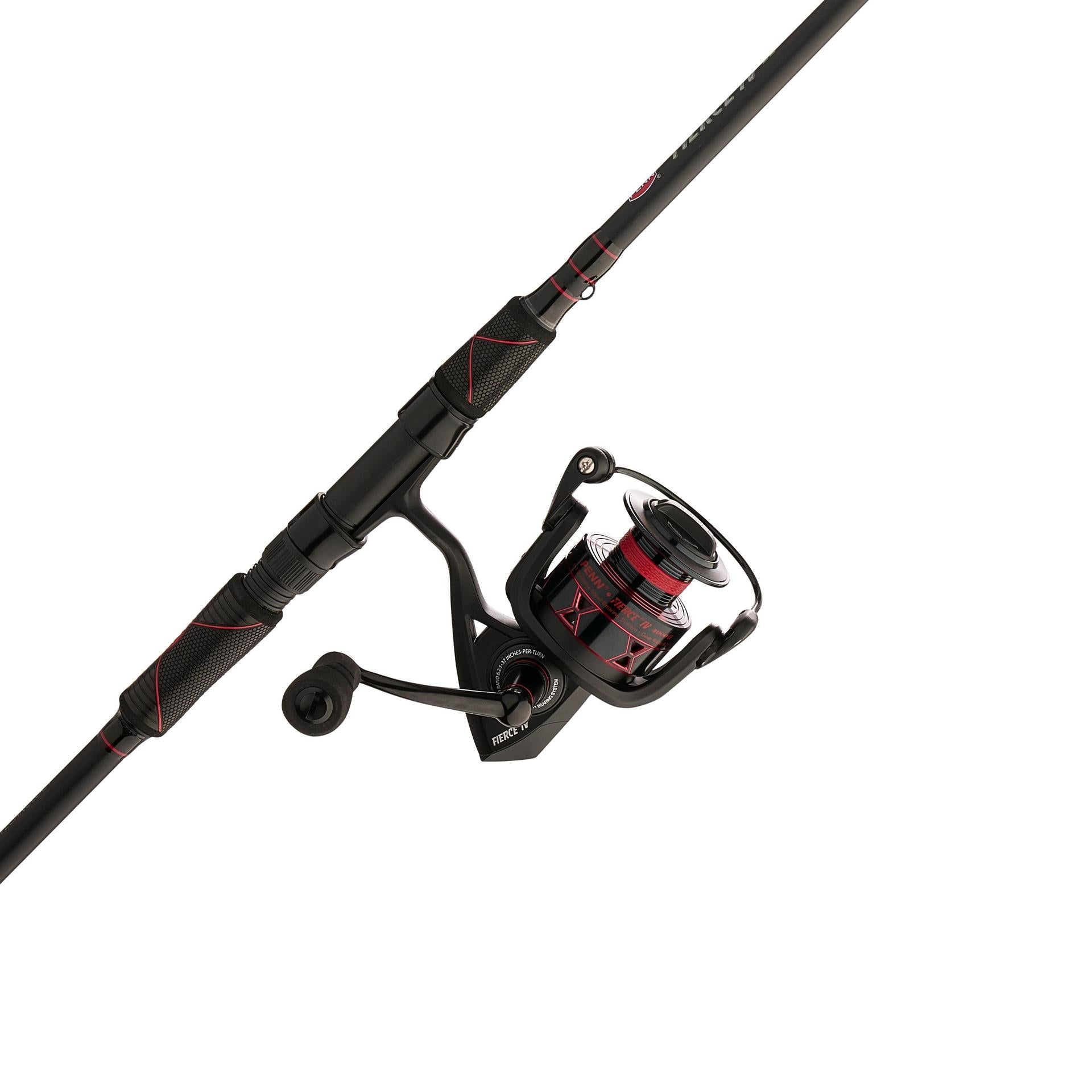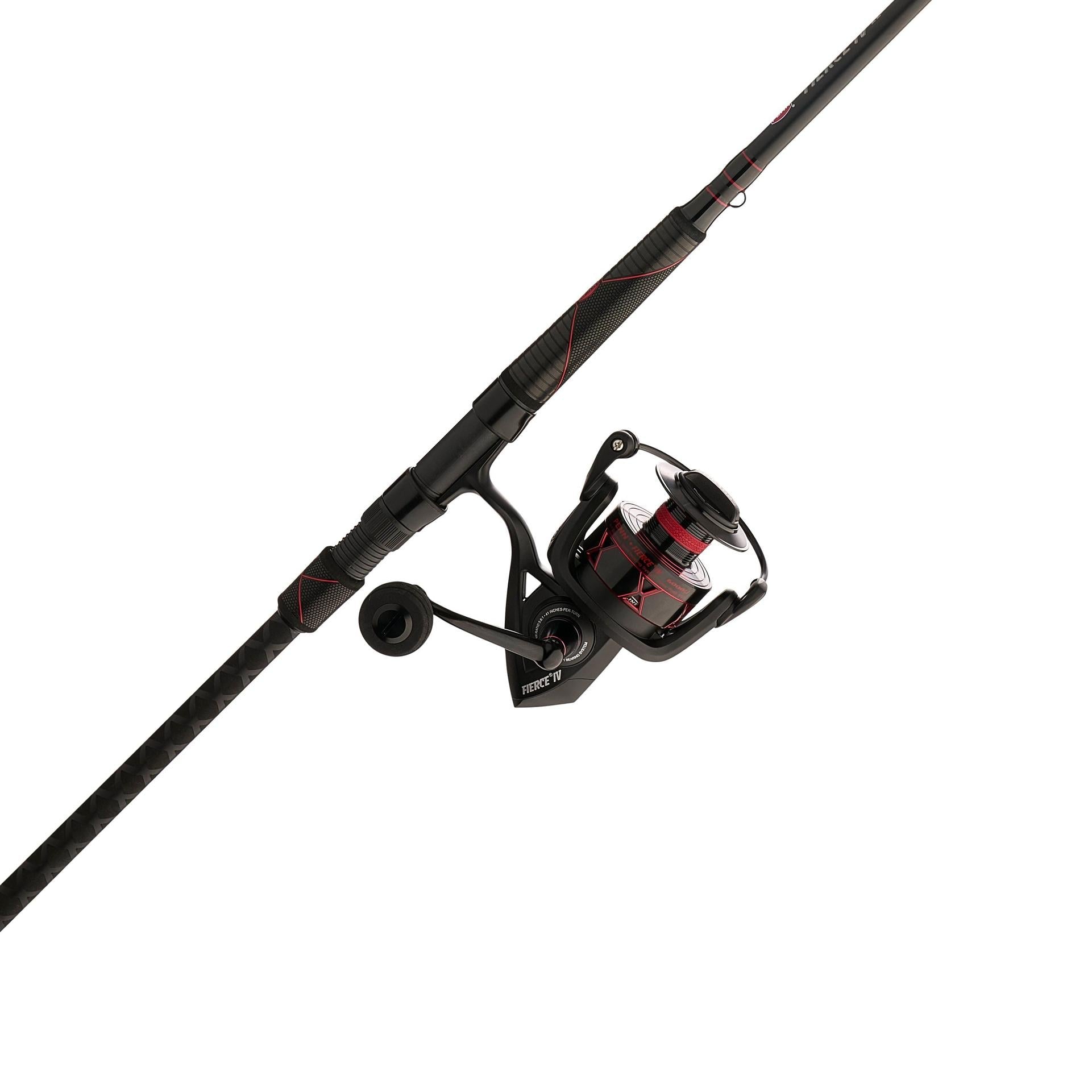 The PENN Fierce IV LE spinning combos are the tactical. yet stylish. fish catching platform. The reels feature full metal bodies and sideplates and are paired with PENN HT-100 carbon fiber drag to give you the strength you need to reel in big fish. The graphite composite rods feature one-piece stainless steel Dura-Guides with ergonomic WINN grips in primary locations to offer exceptional toughness. comfort. and traction. which proves that the Fierce IV LE is a great option for any saltwater application.