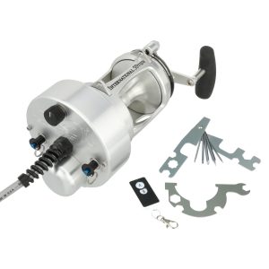 The Hooker Electric PENN International Detachable reels share all the same great features as the Standard reels. which means speeds of 500 feet per min with full variable speed at the turn of the dial. The main benefit though is the electric drive unit is fully detachable from the reel. This allows the angler to drop and retrieve the rig quickly. but when the bite hits. off comes the drive and you’re ready to fight the fish manually. Built from Aircraft-grade Aluminum construction right here in the USA. these reels are built tough to last a lifetime. .