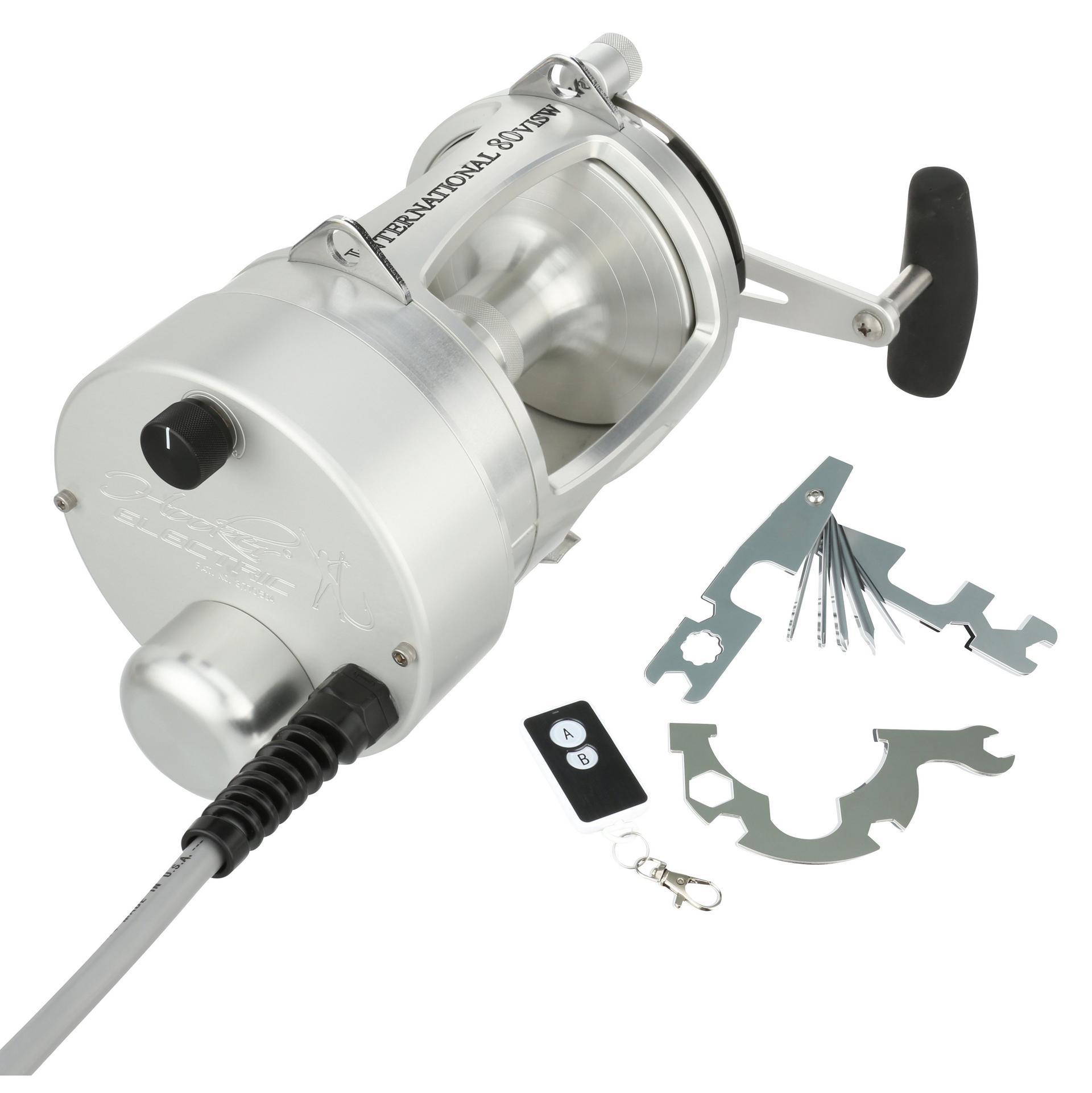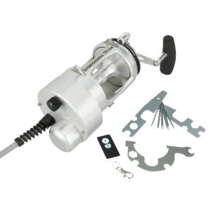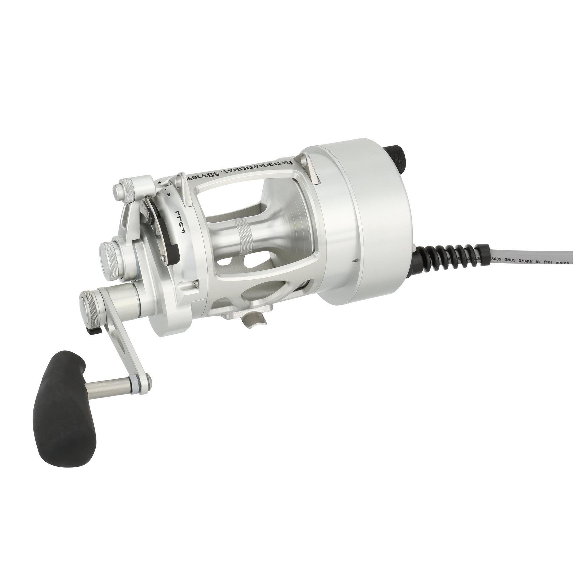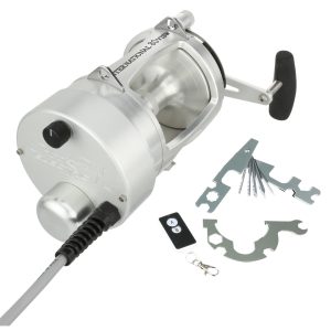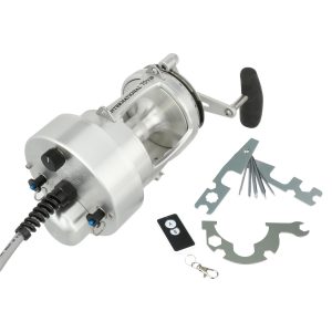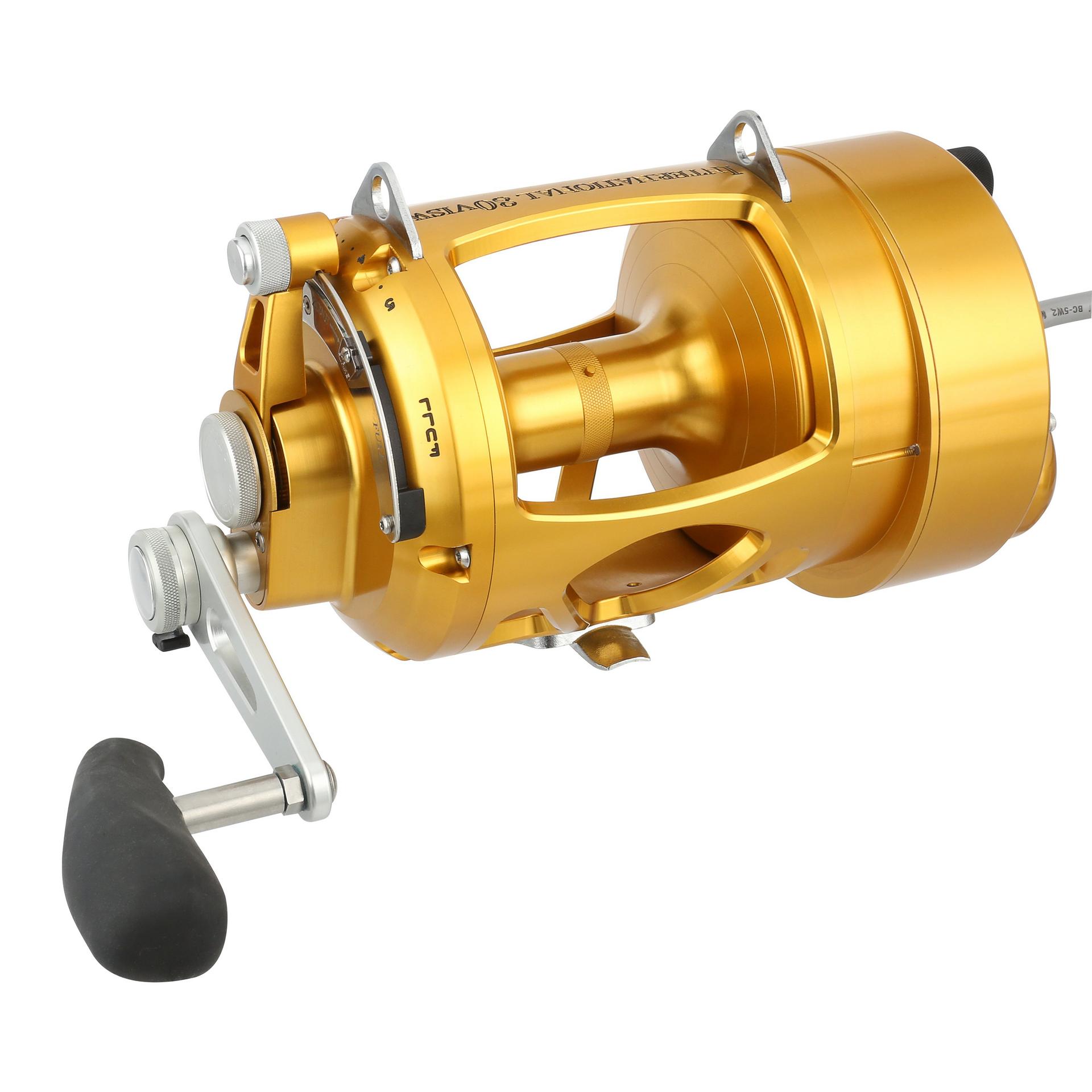 The Hooker Electric PENN International Standard reel can retrieve at speeds of 500 feet per min with full variable speed at the turn of the dial. The motor on the standard reels is permanently attached to the left side of the reel. but the reel handle still works for those that want to fight a fish manually. at the push of a button. Built from Aircraft-grade Aluminum construction right here in the USA. these reels are built tough to last a lifetime. .