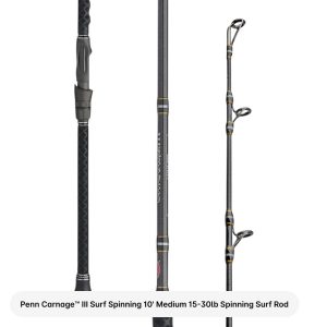 The Slammer IV 6500 Spinning Reel + 10′ Medium Carnage III Surf Rod (15-30 lbs) + is the ultimate surf fishing pairing for long-distance casting power and saltwater-tough performance. The Carnage III Surf Rod’s lightweight yet ultra-strong SLS3 blank delivers exceptional sensitivity and control. helping you detect subtle bites while launching baits far beyond the breakers. Paired with the Slammer IV’s IPX6-sealed body and powerful Dura-Drag system. this combo offers unmatched strength and reliability for handling everything from striped bass to bull reds.