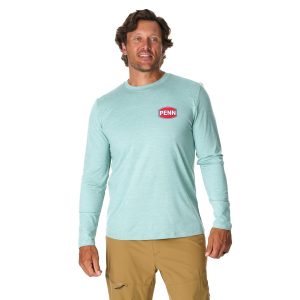 Built from performance polyester. this shirt is a must-have for the saltwater angler. UV protection shields you from harmful rays. while the stain-resistant fabric keeps you looking sharp. The silicone wash ensures a softness. The tough PENN logo is printed to last and this crew neck design leaves space to fit your neck gaiter as you please.